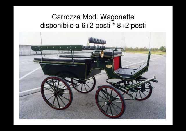 - Carrozza mod. wagonette a 6 e 8 posti tiro a 1 e periglia completa di freni e riflettenti