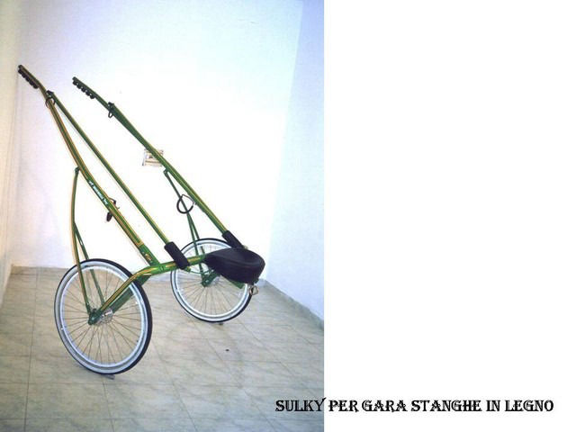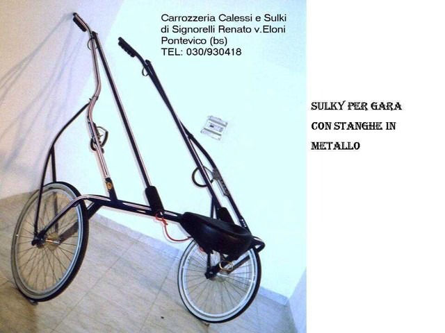 Sulky per gara con stanghe in metallo, con attacchi rapidi sedile e pedana regolabili